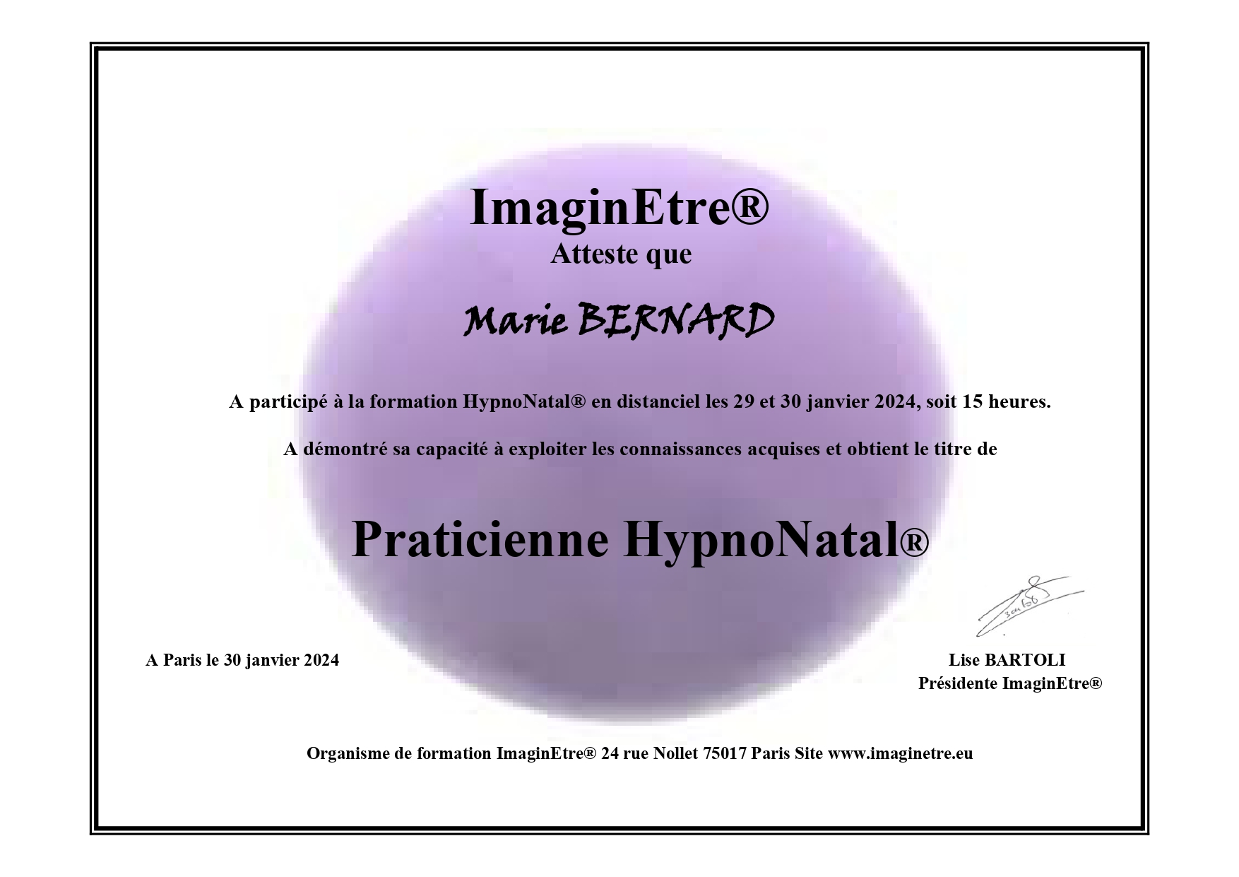 Mes certifications en Hypnose et Doula